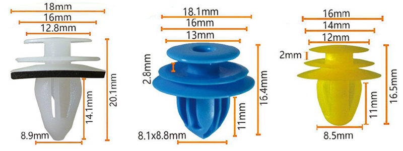 A műanyag pillanatnyi rögzítőelemek a leggyakoribb ajtópanel-rögzítőelemek, és általában nagy szilárdságú műszaki műanyagokból készülnek. Az ilyen típusú csat könnyű, olcsó, korrózióálló stb., És nagyon alkalmas tömegtermelésre.